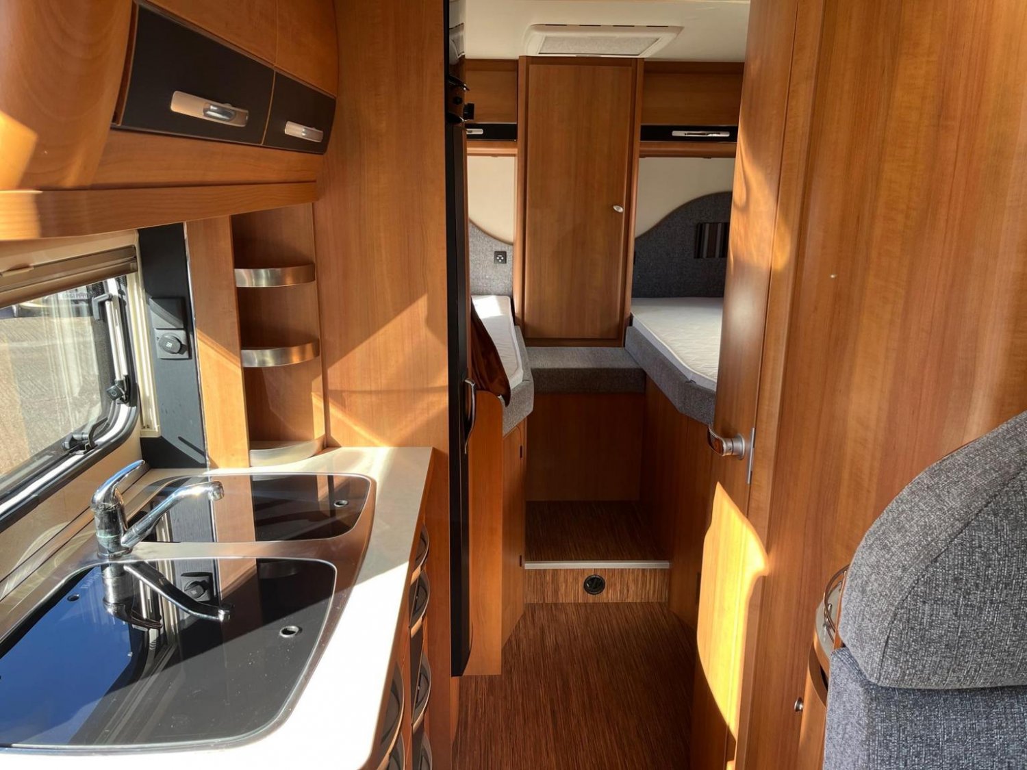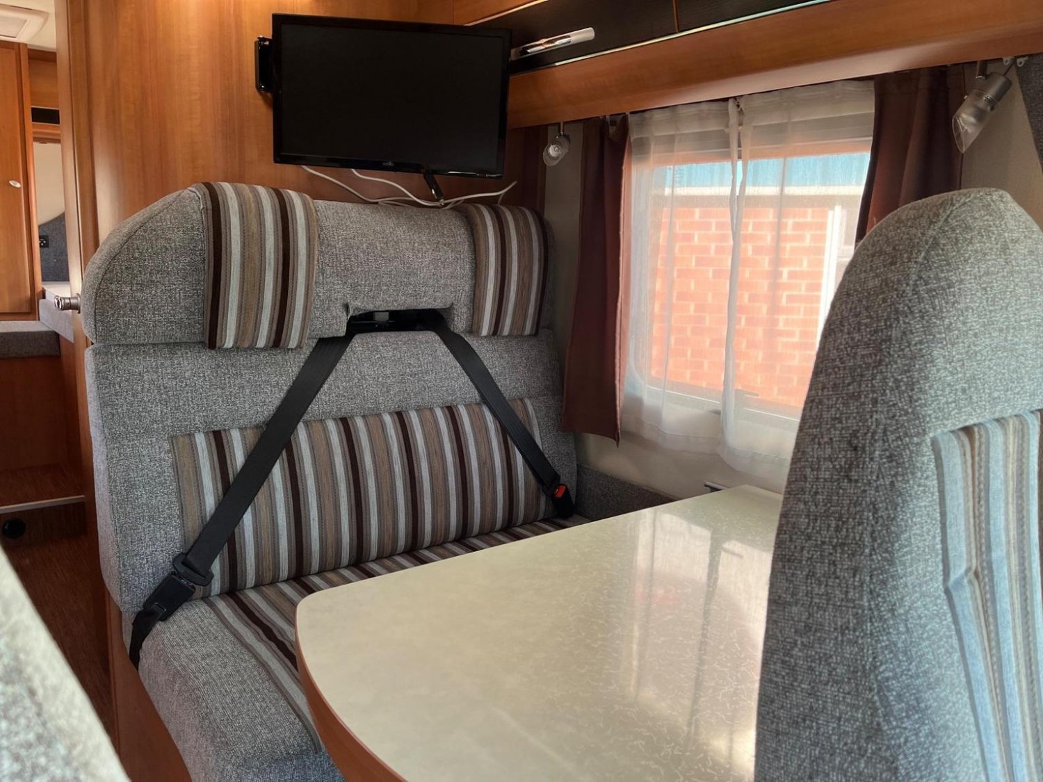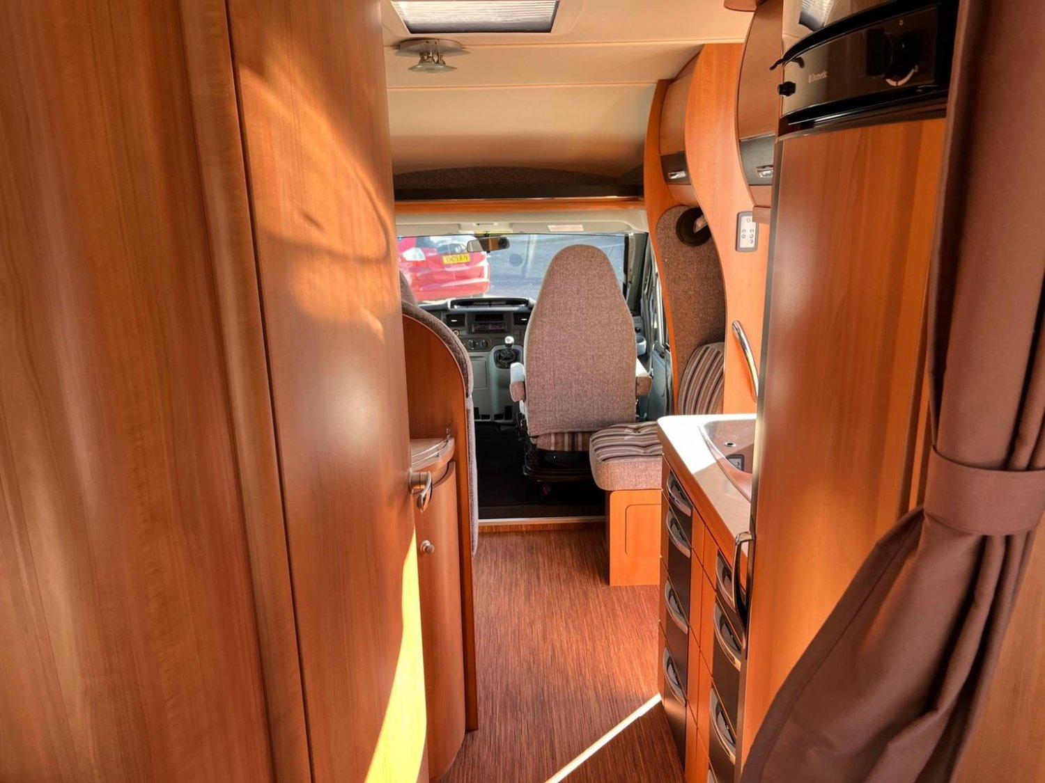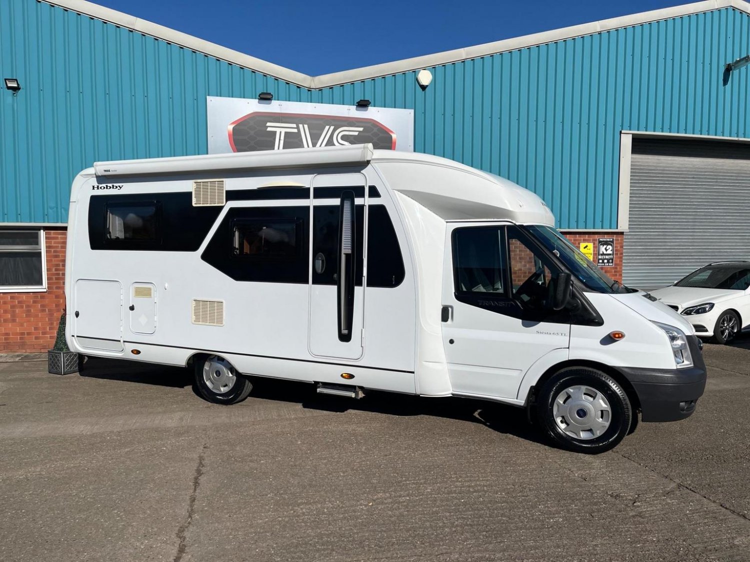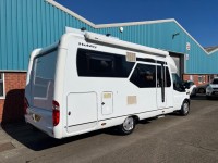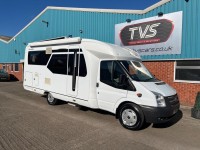 VERY LOW MILEAGE, BASED ON FORD TRANSIT CHASSIS, 3 BERTH, 4 BELTED SEATS, THULE SIDE AWNING, CRUISE CONTROL, CAB AIR CON, CAPTAIN CHAIRS TO FRONT, SHOWROOM, TV IN DINNING AREA, REAR GARAGE/STORAGE WITH ENTRY FROM BOTH SIDES, THULE ELECTRIC STEP,
